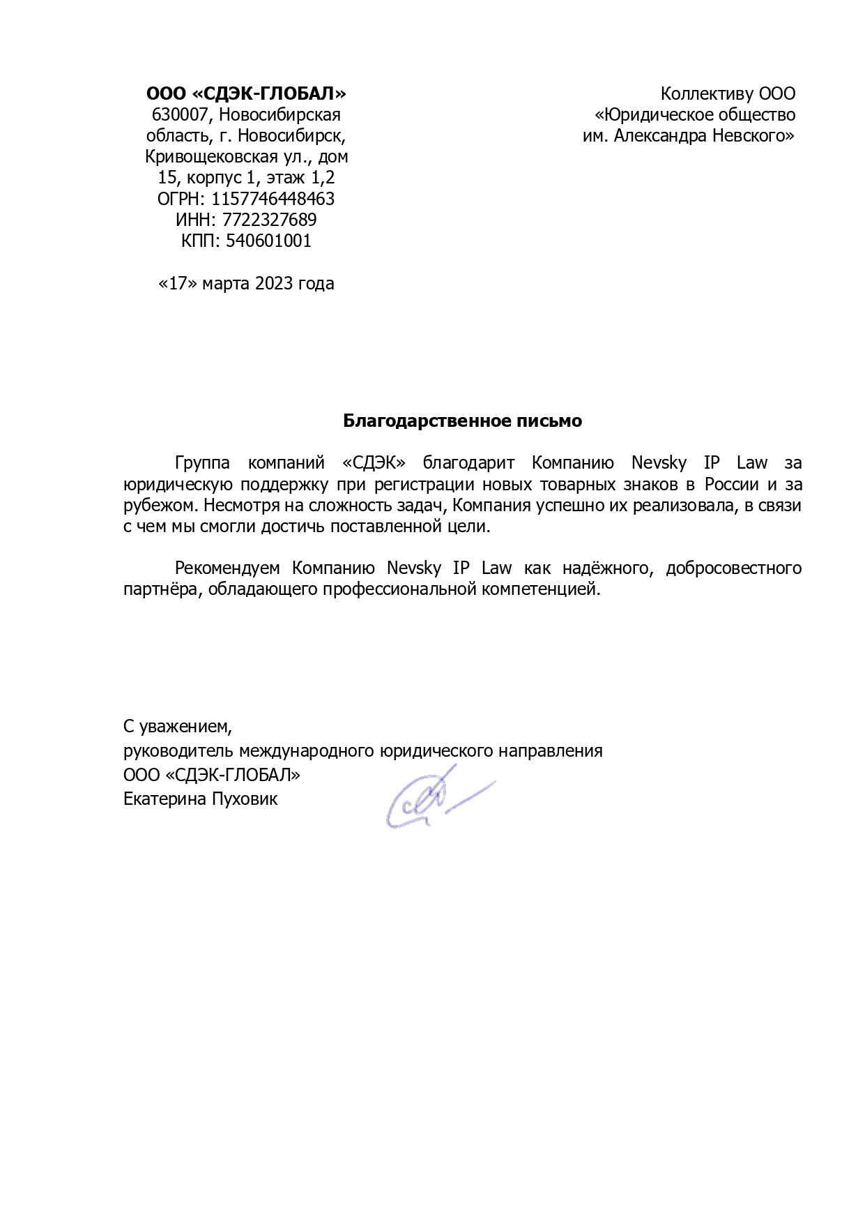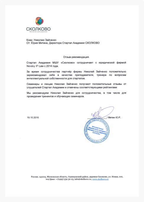 Рекомендую Кирилла для регистрации и защиты вашего товарного знака!»