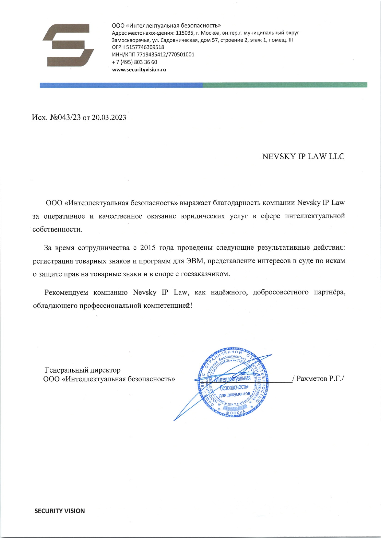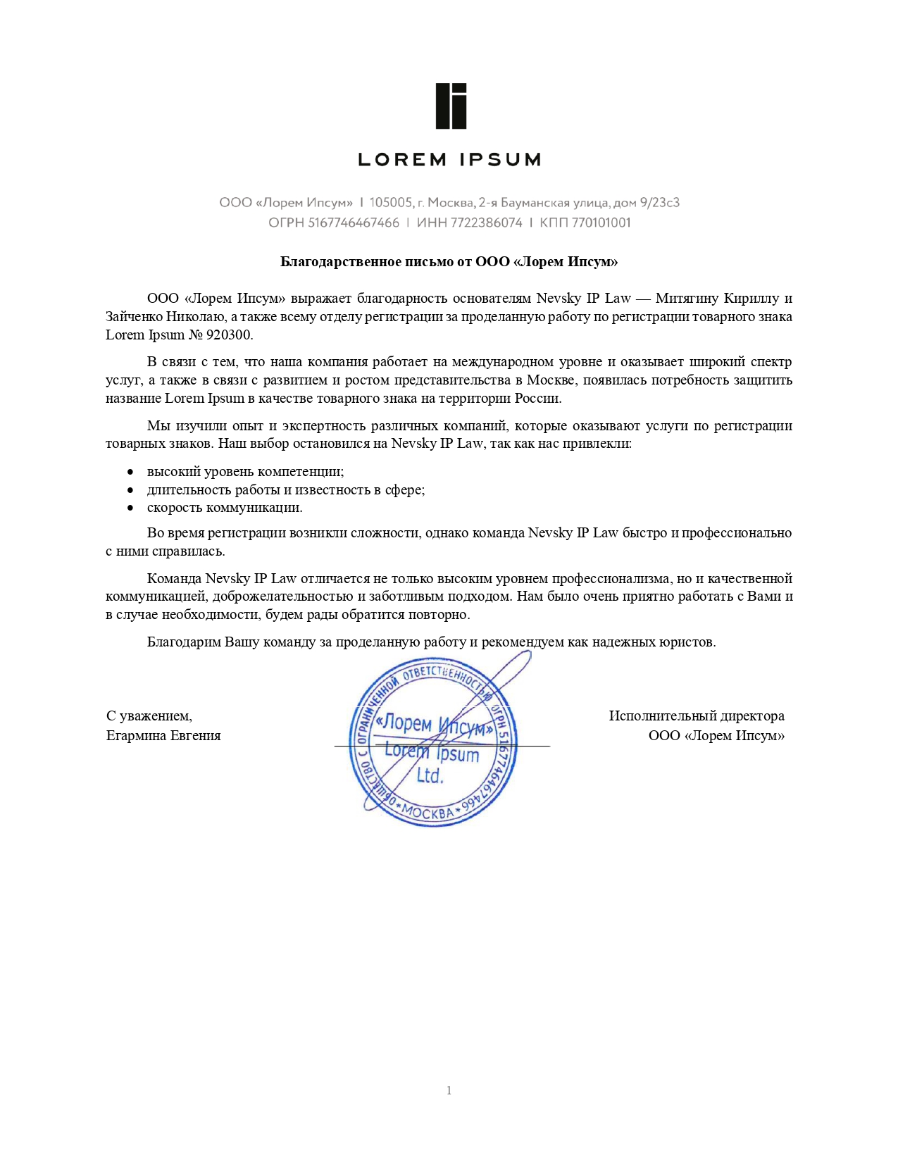 NEVSKY IP LAW регистрирует с 1-го раза